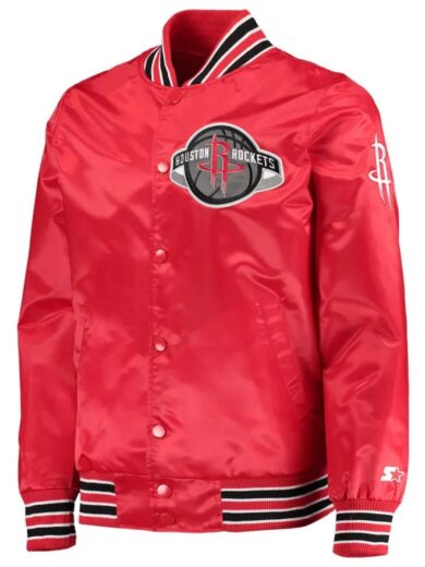 Houston Rockets Teddy Red Varsity Satin Jacket